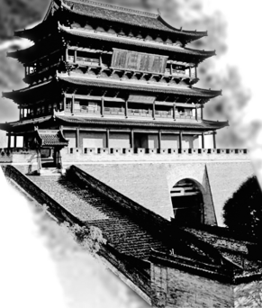 清顾祖禹在《读史方舆纪要》卷十中说:“国家以雁门、宁武、偏关为外三关……盖在京师肘腋间,备不可不豫,虑不可不密也。”从拱卫京师(首都北京)的视角着眼,雁门三关战略意义重大,不仅被看作是保卫首都的外三关,还是山西的“内险”,是联系或阻断山西中部与北部的一条凭险据守的防御地带。边靖楼要“威震”的就是雁门关、宁武关、偏头关,也就是山西内长城的三关。其中雁门关地处要冲,历来是长城内外兵家必争之地。边靖楼作为一座军事建筑,与雁门关构成了纵深的防御体系,站在楼上可以清楚看到由北向南分布的烽火台,接收雁门关传递的各种信号。而且,其地处古城中心,可与昔日代州城内东、西、南、北四座城楼和四个角楼遥相呼应,发布统一的指挥号令,这也正是一个州治所在地的鼓楼规模远远超过京师鼓楼规模的重要原因。也正是因此,昔年战事不断,边靖楼屡立战功,威镇三关。公元1733年,雁平兵备道汤豫诚带着感悟,又题写下了“声闻四达”的巨匾。
